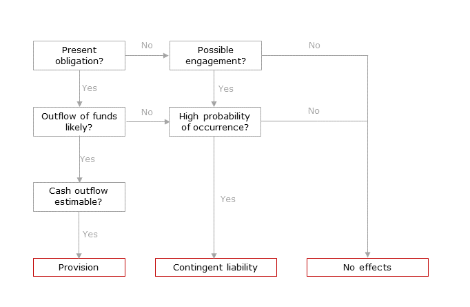 If the outflow of funds is probable and can be estimated reliably enough, a provision must be set up in the balance sheet.